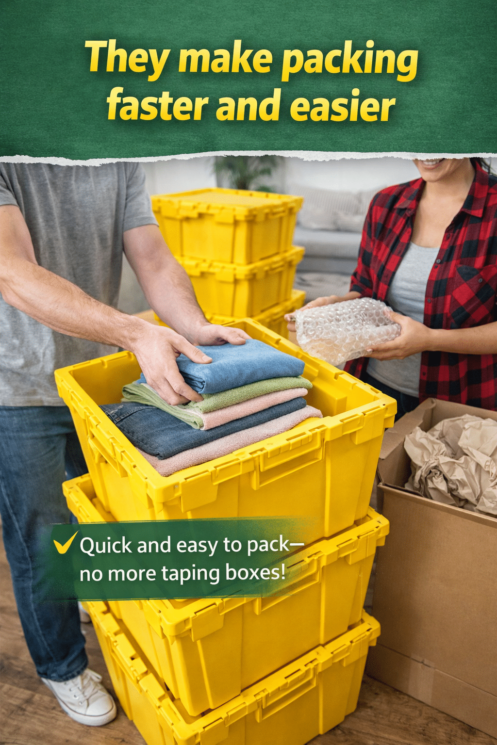 Because reusable moving boxes are made of durable plastic, they offer protection that traditional cardboard boxes cannot. Their sturdy design helps keep belongings safe from moisture and prevents boxes from collapsing during loading and unloading.